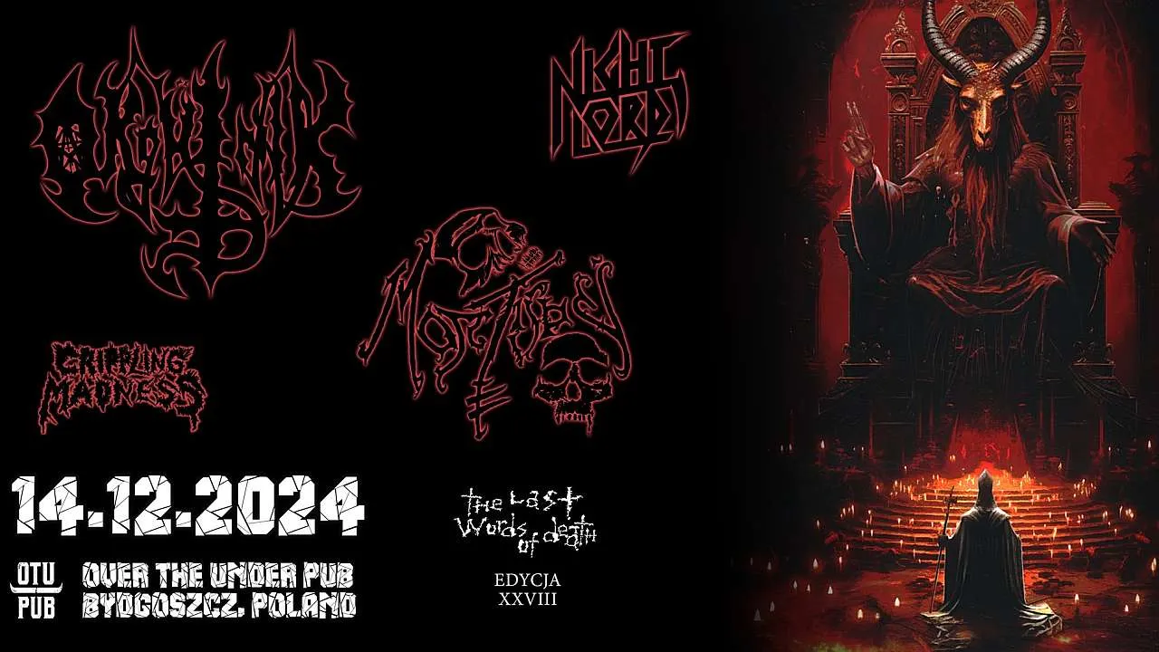 14 grudnia 2024 w Bydgoszczy odbędzie się 28. edycja The Last Words of Death. Na scenie Over The Under Pub wystąpią następujące zespoły: