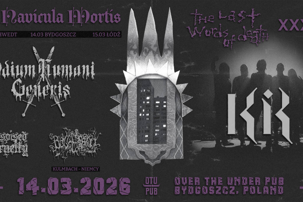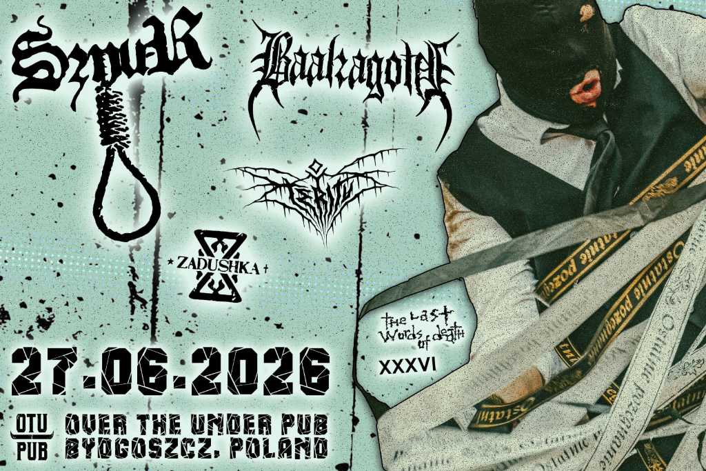 Foto: Facebook / The Last Words of Death27 czerwca 2026 w Bydgoszczy odbędzie się 36. edycja The Last Words of Death. Na scenie Over The Under Pub wystąpią następujące zespoły:Sznur - Metal/Wałbrzych/istnieją od 2017Baalzagoth - Czarny Death Metal/Kostrzyn nad Odrą/istnieją od 2019Eteritus - Death-Black Metal/Toruń/istnieją od 2013Zadushka - Experimental Metal-Necrodoom/Opole/istnieją od ...Info o biletach wkrótce. Tagi:Over the UnderThe Last Words of Death